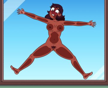 変態おっぱい – ガラス乳輪に対して1人の女の子、裸足の腹、ガラスの上の赤面の胸、胸