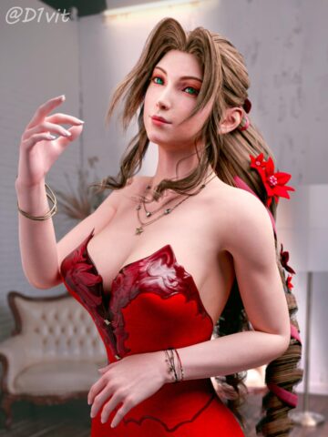 赤いストラップレスドレスのエアリス (D1vit) (ファイナルファンタジー)